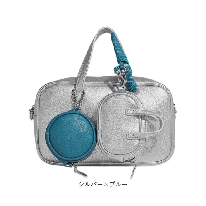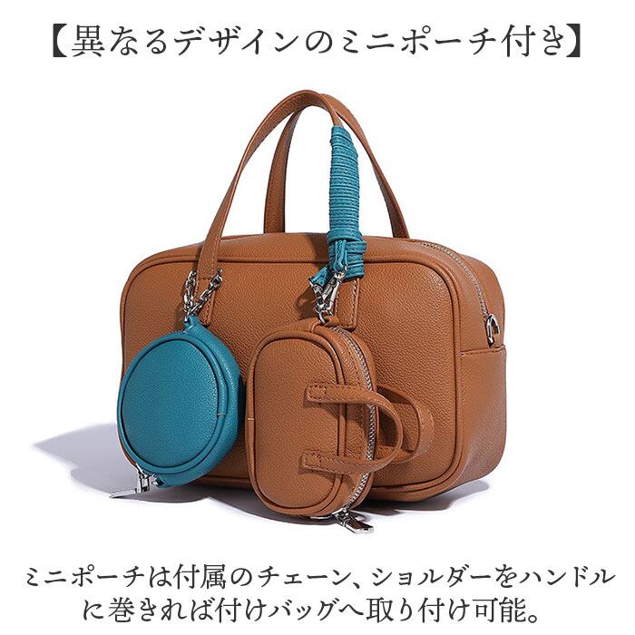・ミニポーチは付属のチェーン、ショルダーをハンドルに巻きれば付けバッグへ取り付け可能。