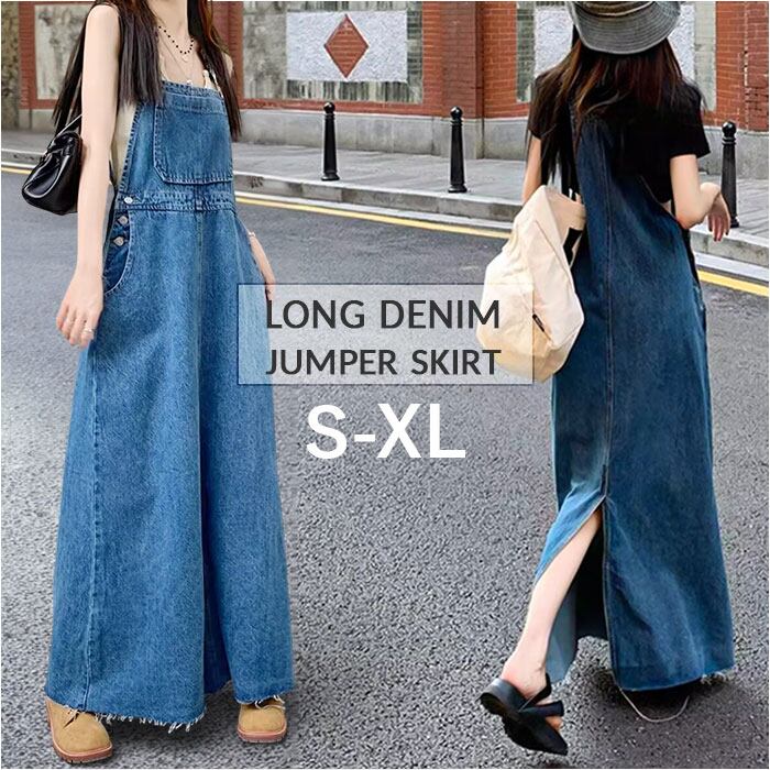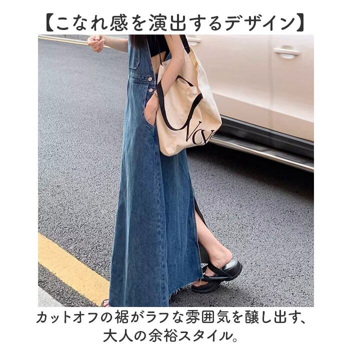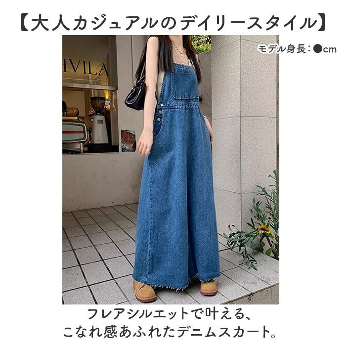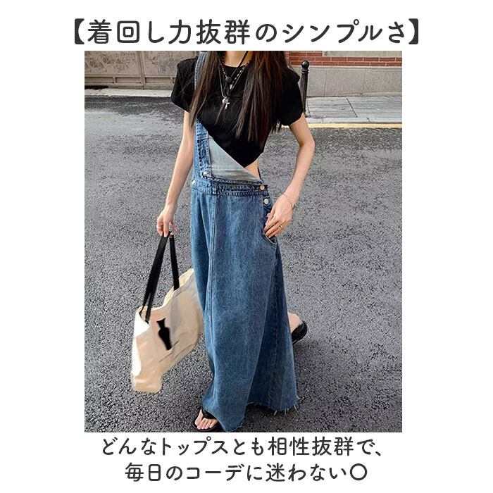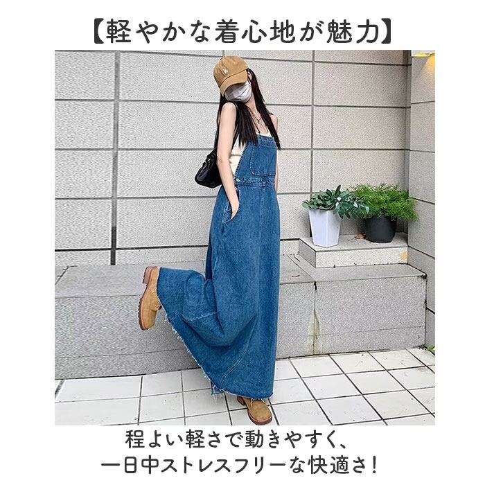 ジャンパースカート レディース デニム 通販 ジャンスカ 大人 サロペット ワンピース オールインワン スカート デニムワンピース サロペットスカート ロング丈 ワンピ おしゃれ かわいい 春 夏 秋 ゆったり 体型カバー 大きいサイズ カジュアル