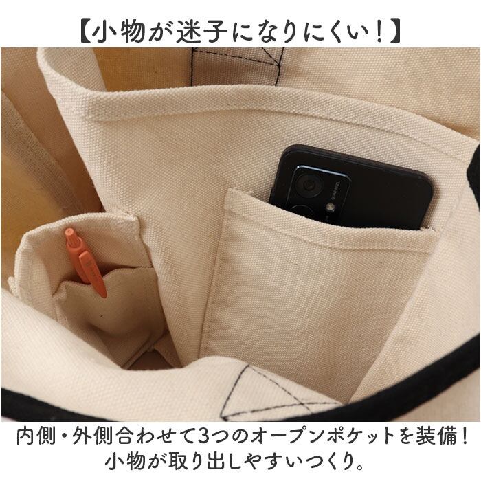 ・内側・外側合わせて3つのオープンポケットを装備!小物が取り出しやすいつくり。