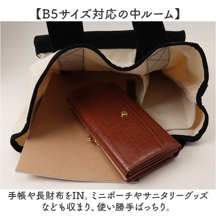 ・手帳や長財布をIN。ミニポーチやサニタリーグッズなども収まり、使い勝手ばっちり。