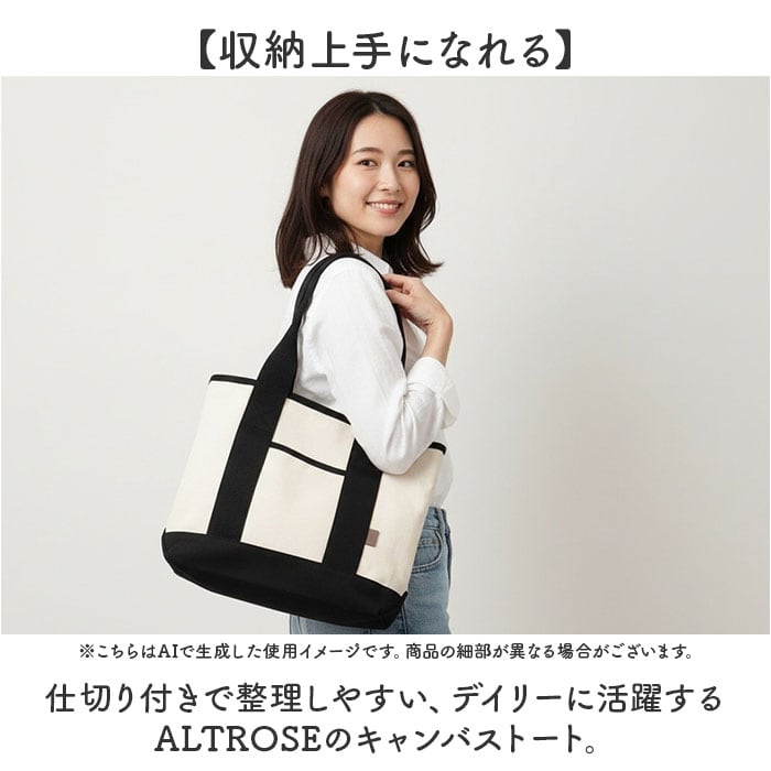 ・仕切り付きで整理しやすい、デイリーに活躍するALTROSEのキャンバストート。