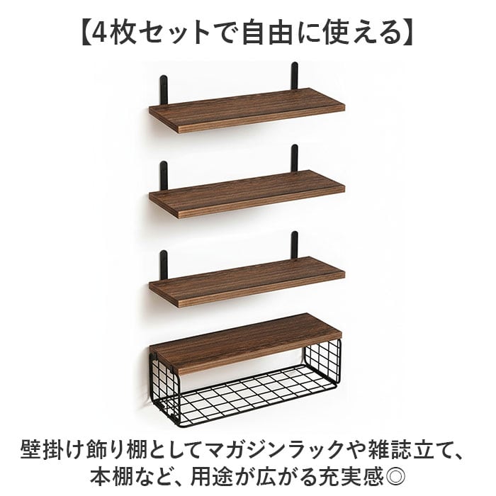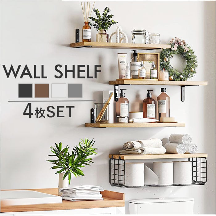 ・デッドスペースを活用して、おしゃれに片付くウォールシェルフ 4枚セット。