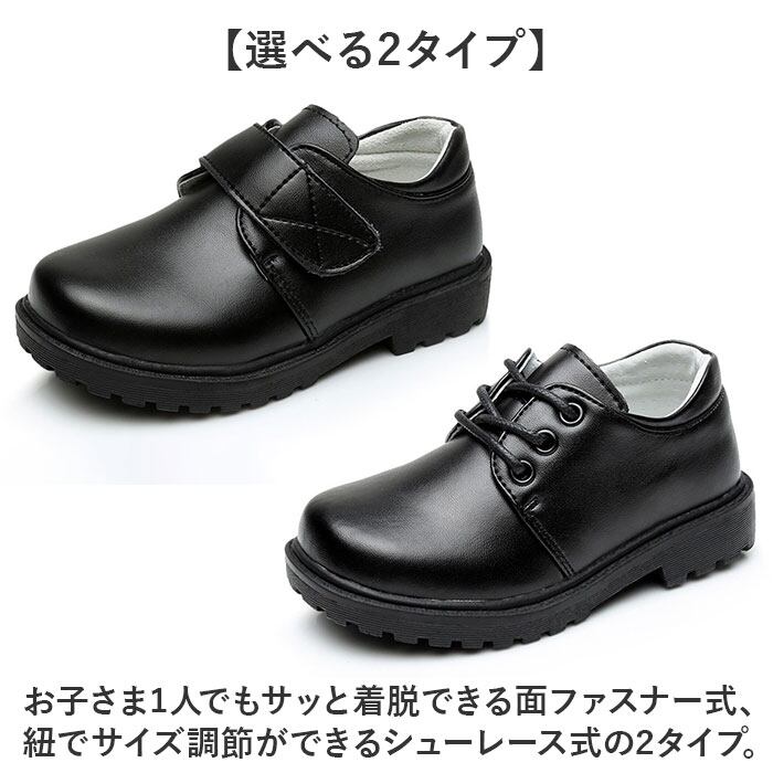 ・お子さま1人でもサッと着脱できる、面ファスナー式。紐の結び具合で多少のサイズ調節ができる、シューレース式の2タイプ。
