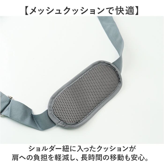 ・ショルダー紐に入ったクッションが肩への負担を軽減し、長時間の移動も安心。