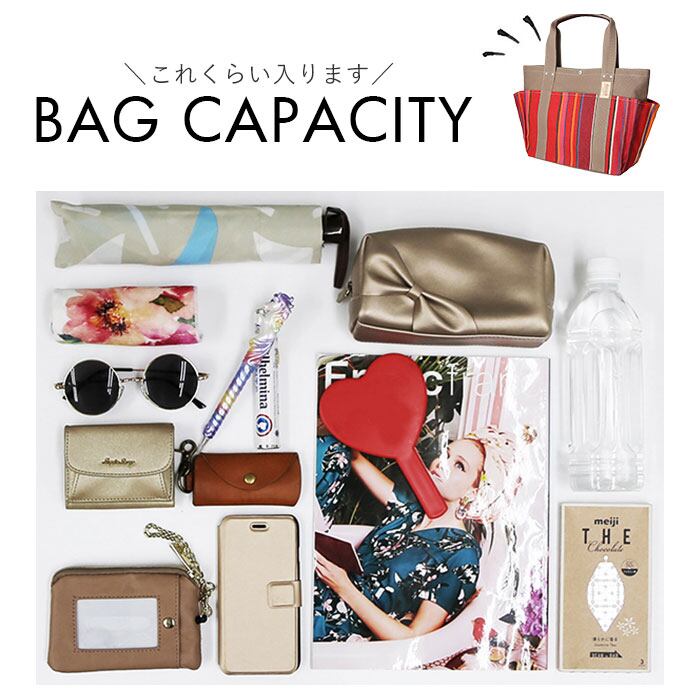 ・トートの外側に4つのオープンポケットが付いて、収納たっぷり!デイリーユースはもちろん、マザーズバッグとしてもエコバッグとしても使いやすい★