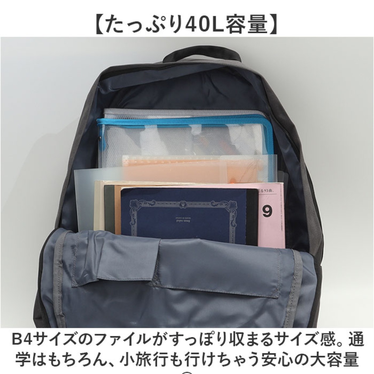 ・B4サイズのファイルがすっぽり収まるサイズ感。通学はもちろん、小旅行も行けちゃう安心の大容量◎