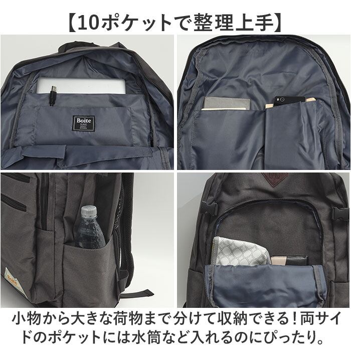 ・小物から大きな荷物まで分けて収納できる!両サイドのポケットには水筒など入れるのにぴったり。