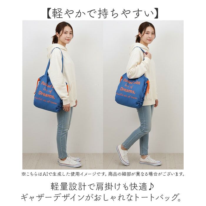 ・軽量設計で肩掛けも快適♪ギャザーデザインがおしゃれなトートバッグ。