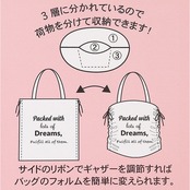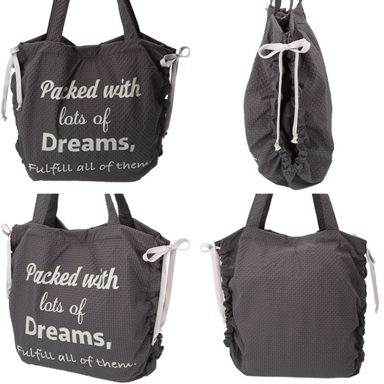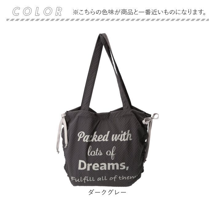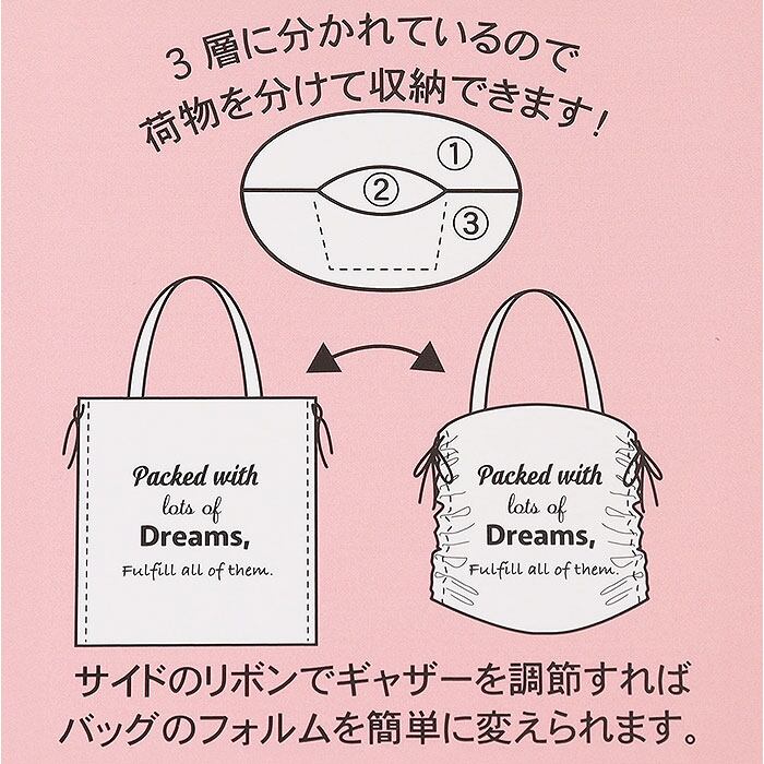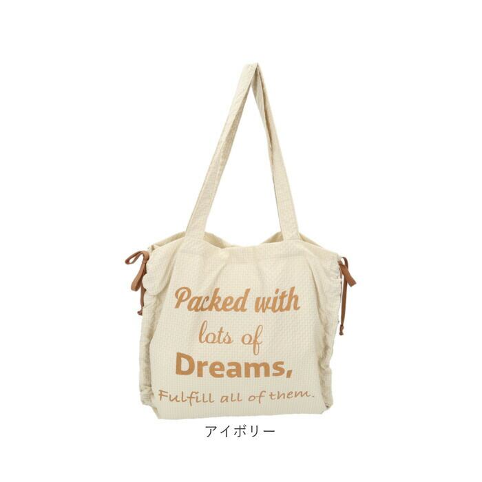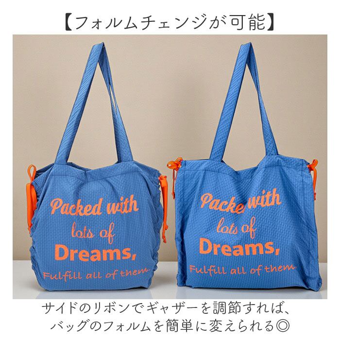 ・サイドのリボンでギャザーを調節すればバッグのフォルムを簡単に変えられる◎