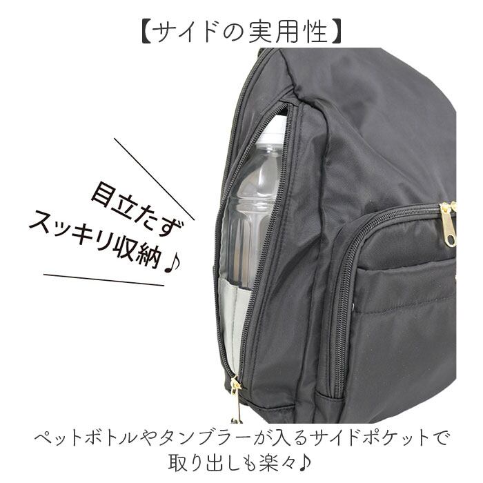 ・ペットボトルやタンブラーが入るサイドポケットで取り出しも楽々♪