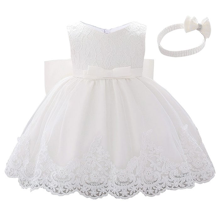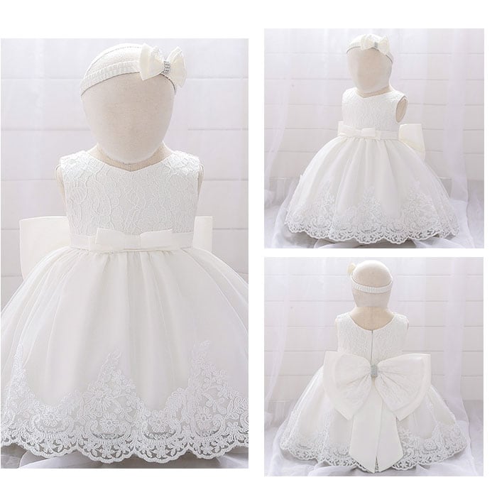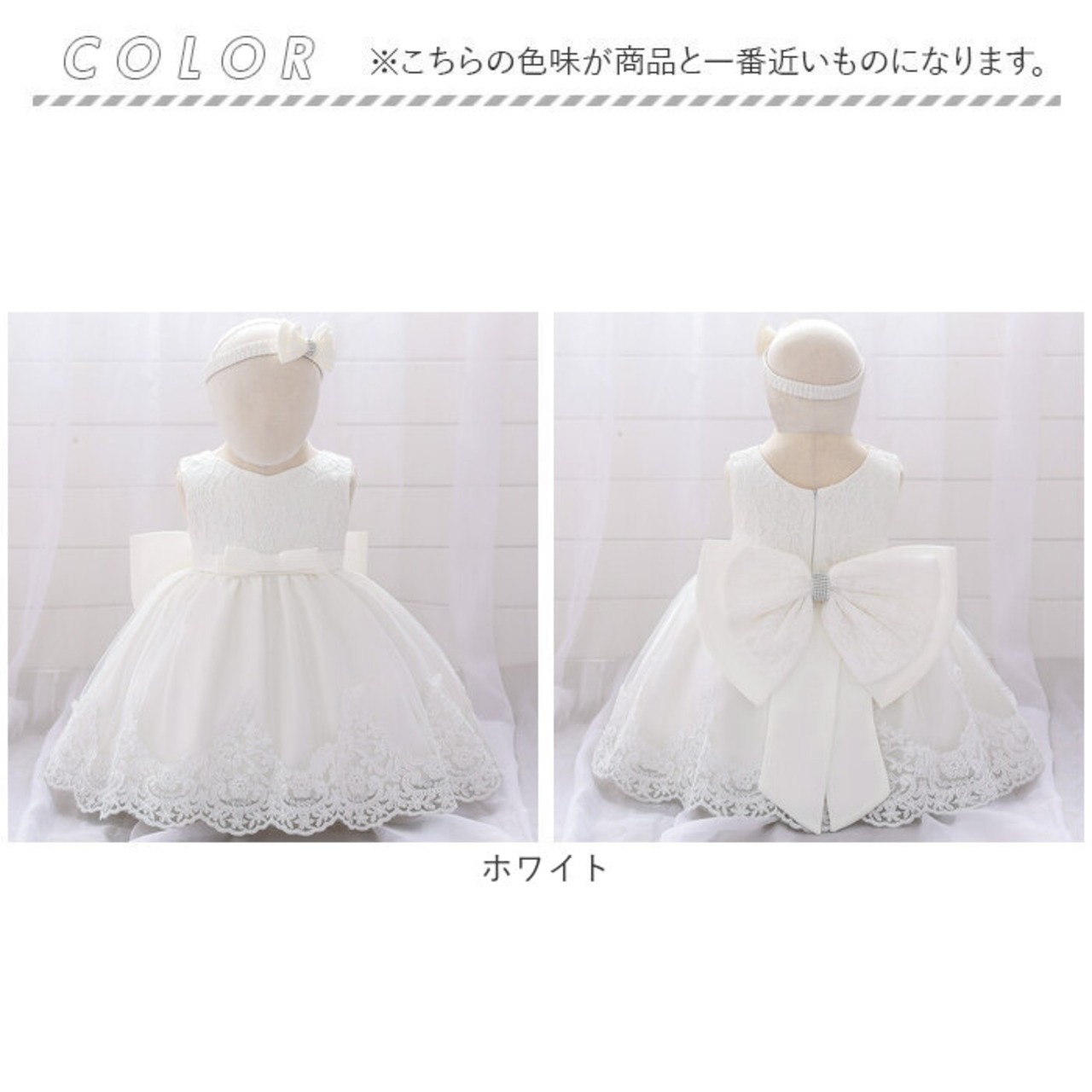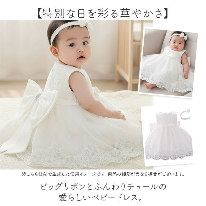 ・ビッグリボンとふんわりチュールの愛らしいベビードレス。