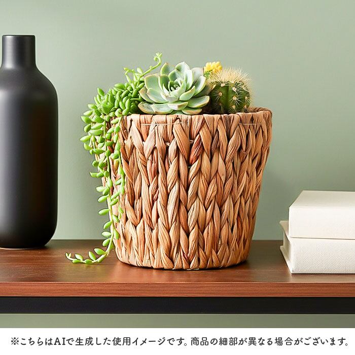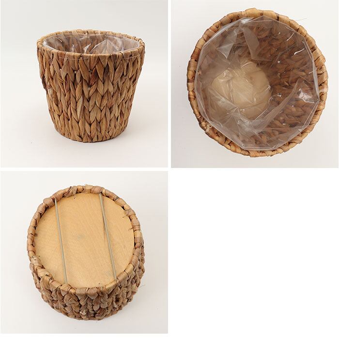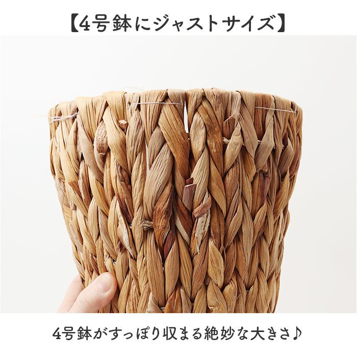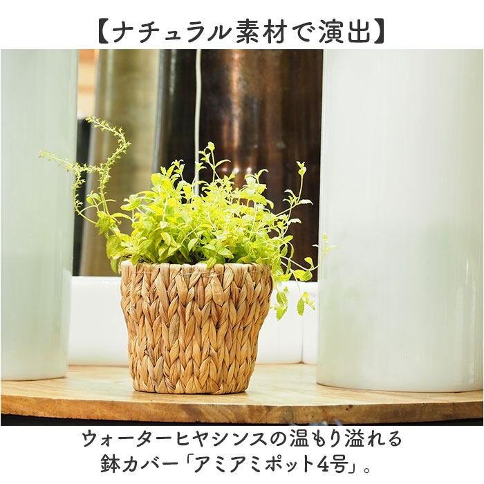 ・ウォーターヒヤシンスの温もり溢れる鉢カバー「アミアミポット4号」。