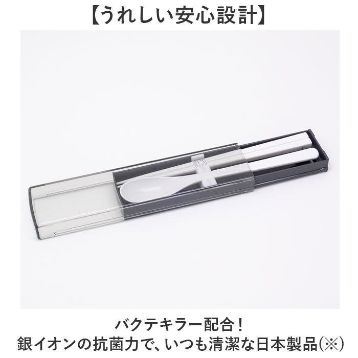 ・バクテキラー配合!銀イオンの抗菌力で、いつも清潔な日本製品。※抗菌加工部分:ケース・お箸・スプーン。抗菌剤の種類:銀等無機抗菌剤