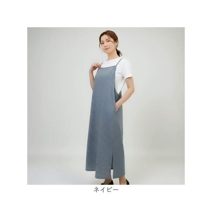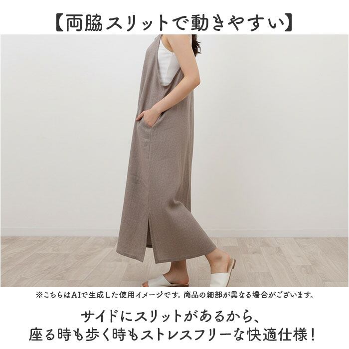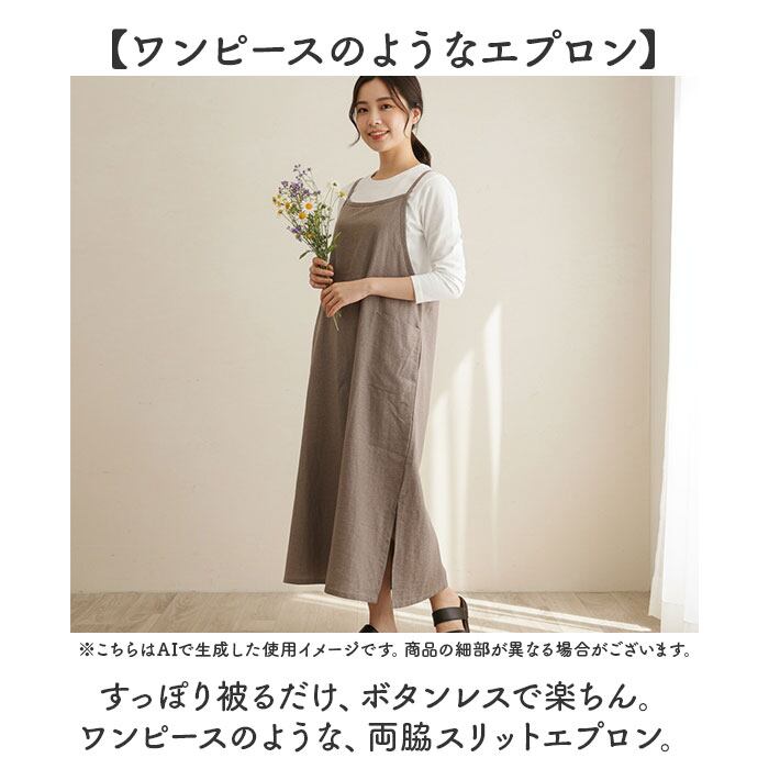 ・すっぽり被るだけ、ボタンレスで楽ちん。ワンピースのような、両脇スリットエプロン。
