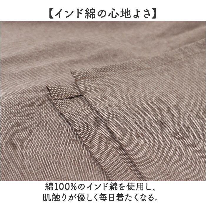 ・綿100%のインド綿を使用し、肌触りが優しく毎日着たくなる。