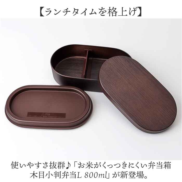 ・使いやすさ抜群♪「お米がくっつきにくい弁当箱 木目小判弁当L 800ml」が新登場。