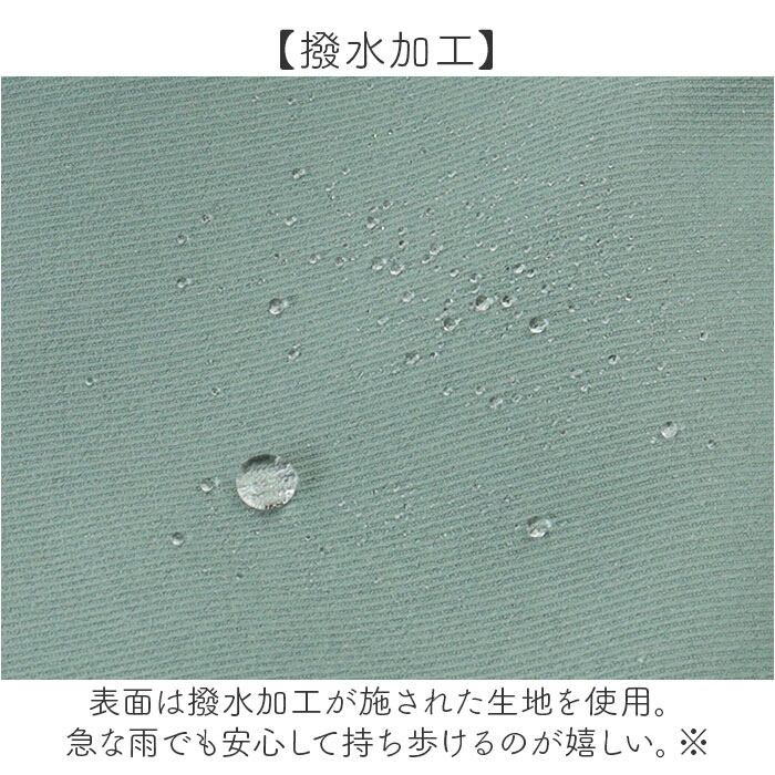 ・表面は撥水加工が施された生地を使用。急な雨でも安心して持ち歩けるのが嬉しい。※完全防水ではありません。