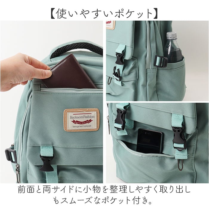 ・前面と両サイドに小物を整理しやすく取り出しもスムーズなポケット付き。
