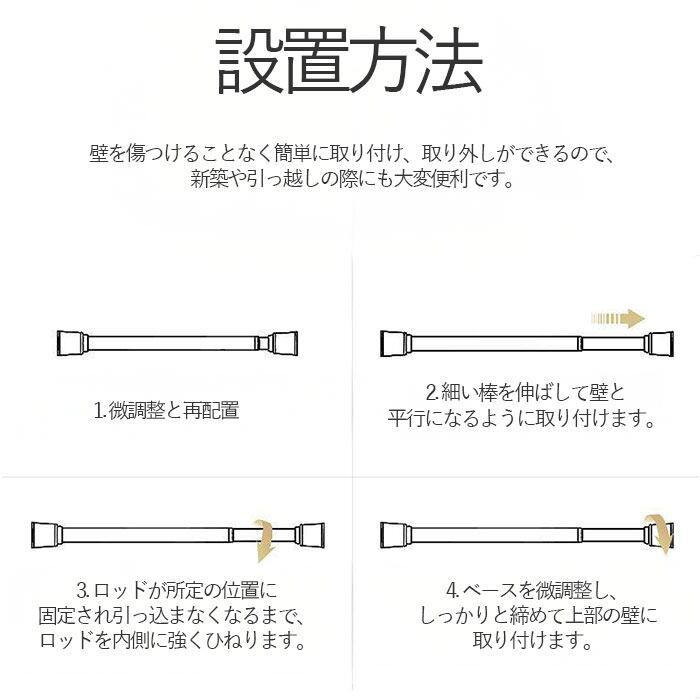 ・穴あけ不要で簡単設置、多用途に使える強力突っ張り棒。