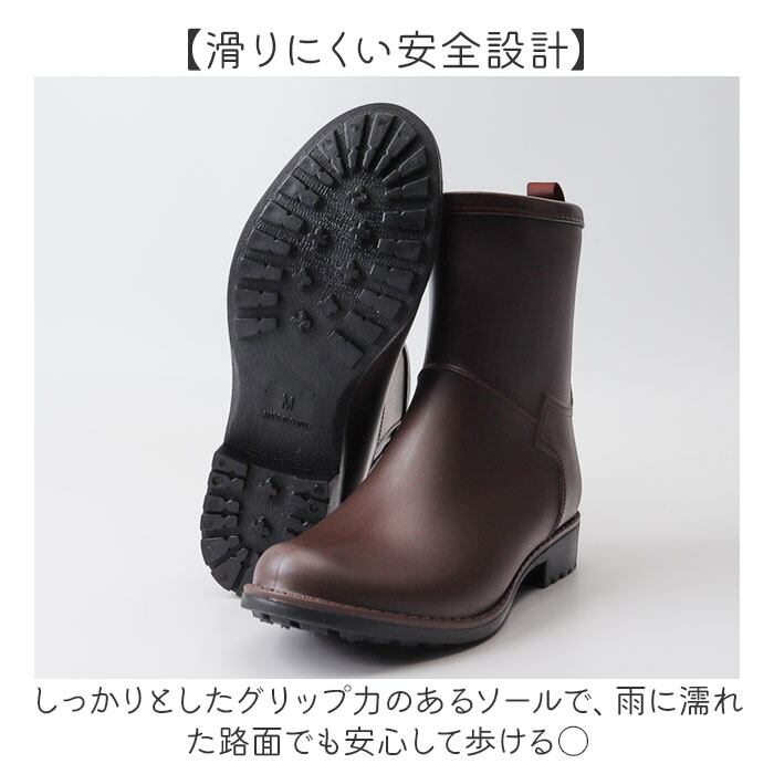 ・サイドジップで脱ぎ履き楽々、雨の日のお出かけを上品に彩るレインブーツ
