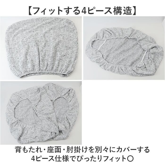 ・背もたれ・座面・肘掛けを別々にカバーする4ピース仕様でぴったりフィット〇