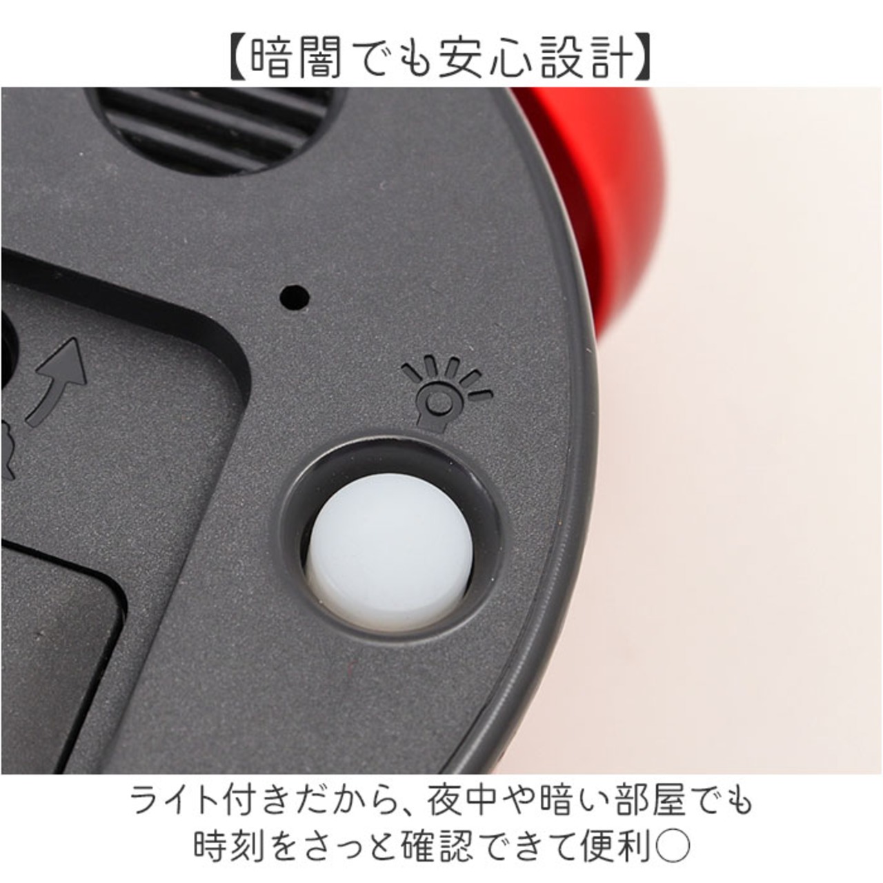 ・ライト付きだから、夜中や暗い部屋でも時刻をさっと確認できて便利〇
