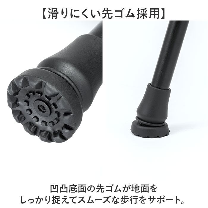 ・凹凸底面の先ゴムが地面をしっかり捉えてスムーズな歩行をサポート。
