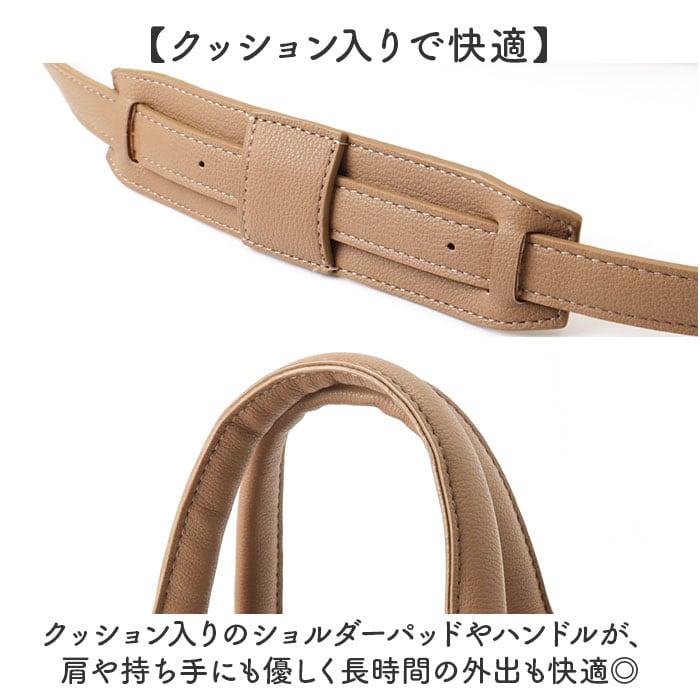 ・クッション入りのショルダーパッドやハンドルが、肩や持ち手にも優しく長時間の外出も快適◎