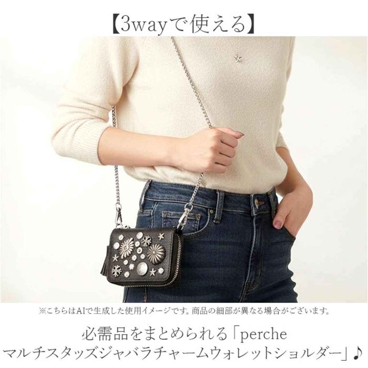 perche マルチスタッズジャバラチャームウォレットショルダー
