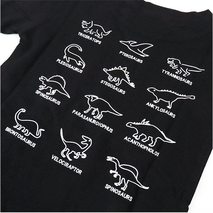 ・バックプリントにはたくさんの恐竜が集合、まるで図鑑のような楽しいデザインが魅力的♪