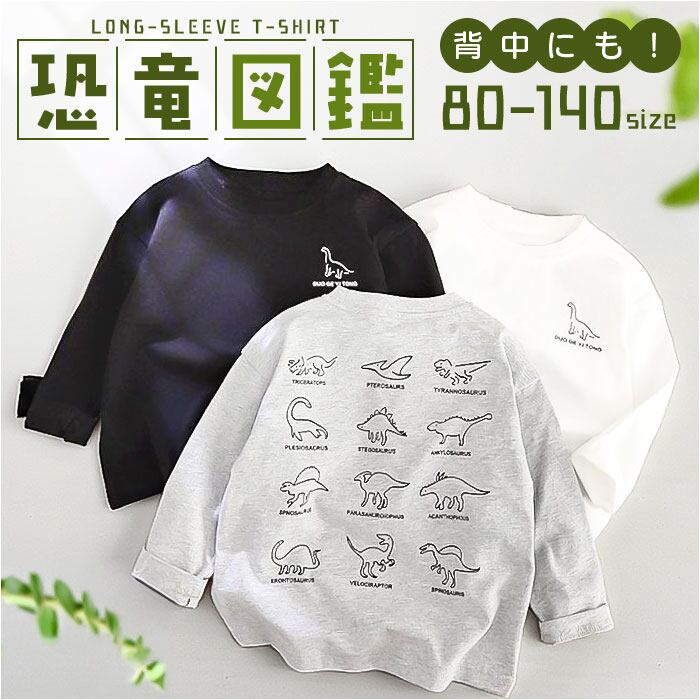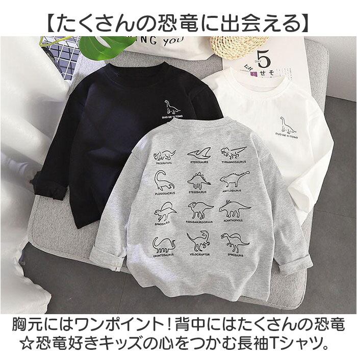 Tシャツ キッズ ロンティー 長袖 恐竜図鑑