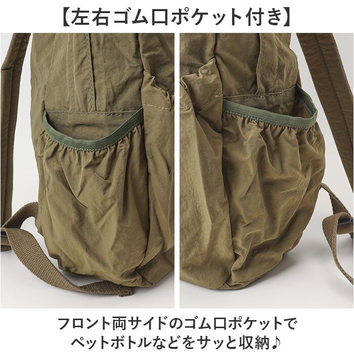 ・フロント両サイドのゴム口ポケットでペットボトルなどをサッと収納♪