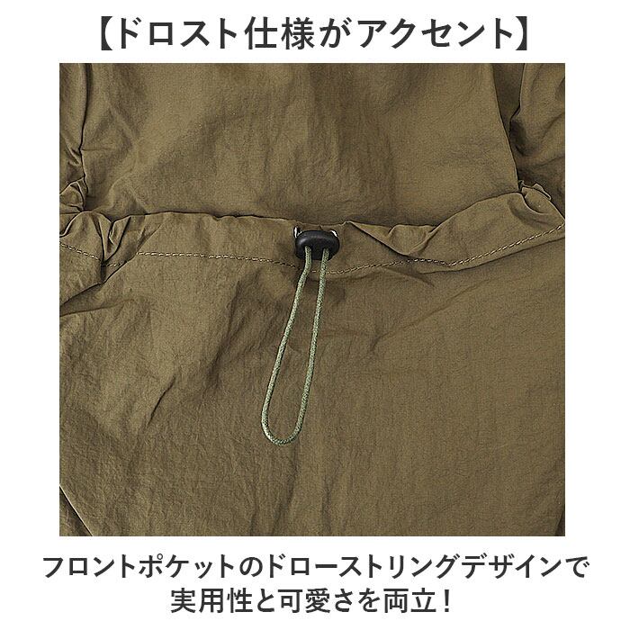 ・フロントポケットのドローストリングデザインで実用性と可愛さを両立!