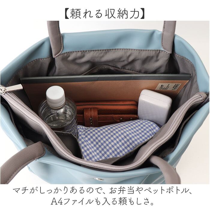・マチがしっかりあるので、お弁当やペットボトル、A4ファイルも入る頼もしさ。