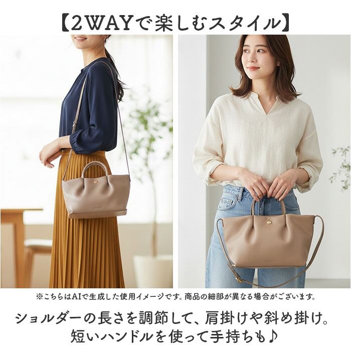 ・ショルダーの長さを調節して、肩掛けや斜め掛け。短いハンドルを使って手持ちも♪