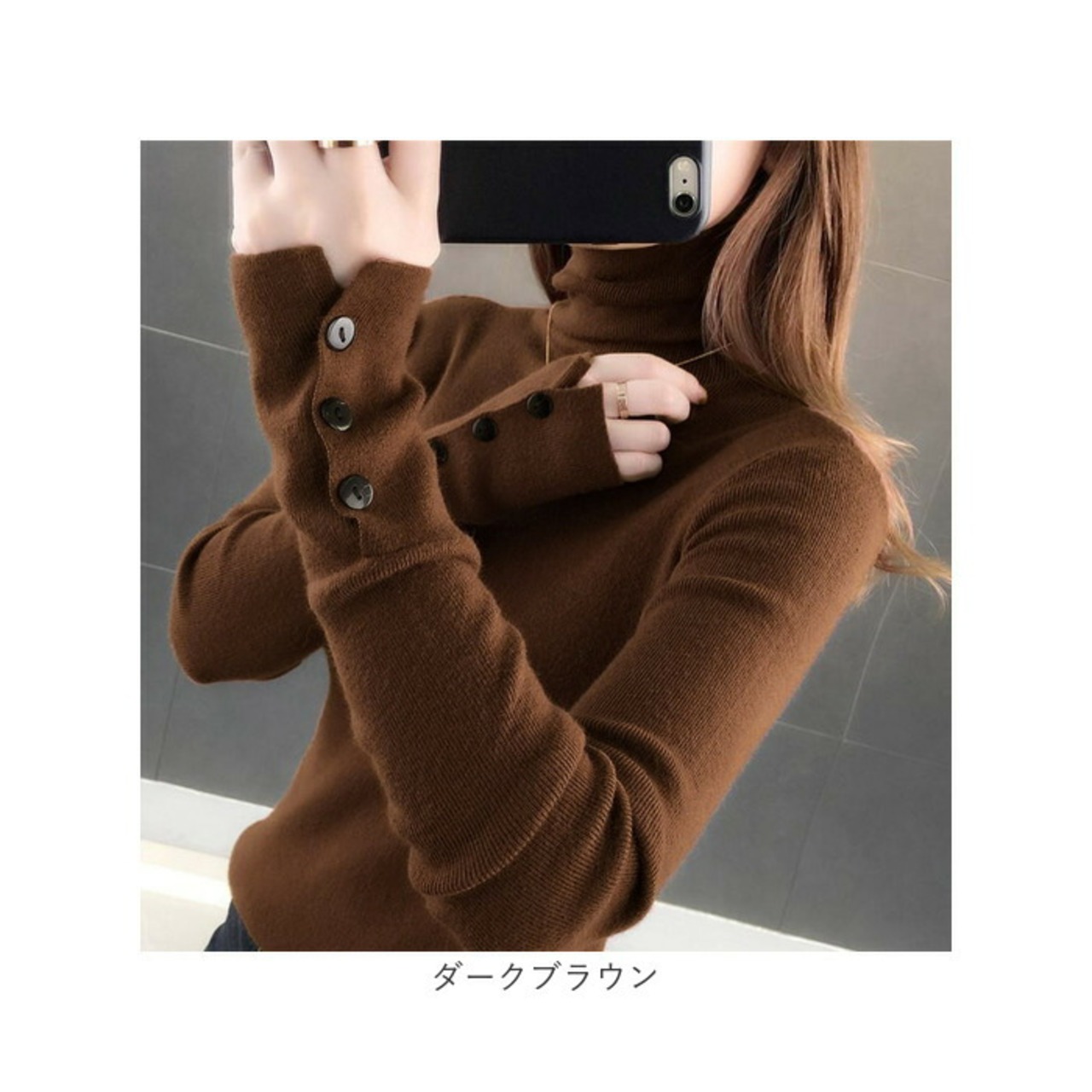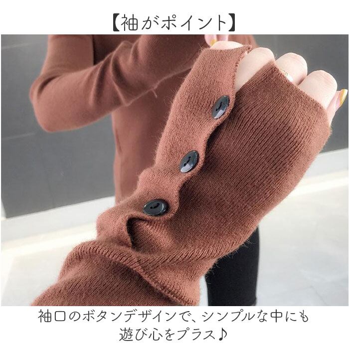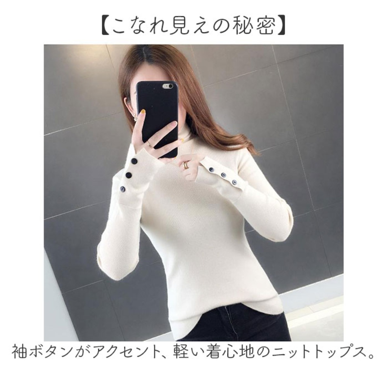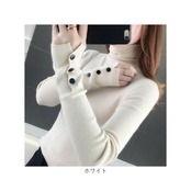 ・袖ボタンがアクセント、軽い着心地のニットトップス。