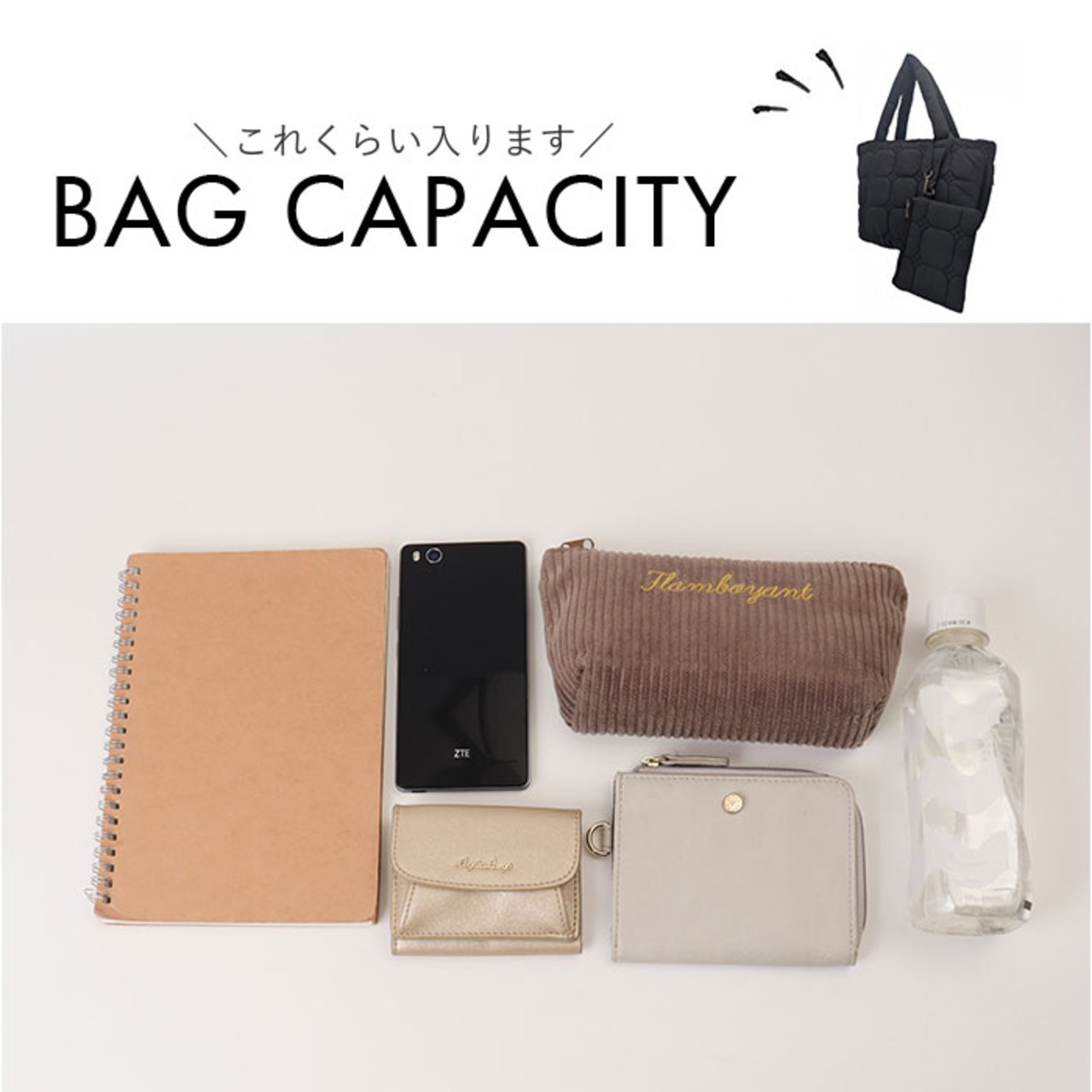 ・必要なものがしっかり入る容量。小物の収納に便利なオープンポケット付き。