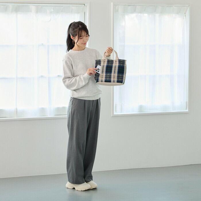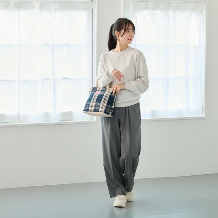 ・持ち手と底面には合皮を合わせて、カジュアルな中にもきちんと感をプラス。