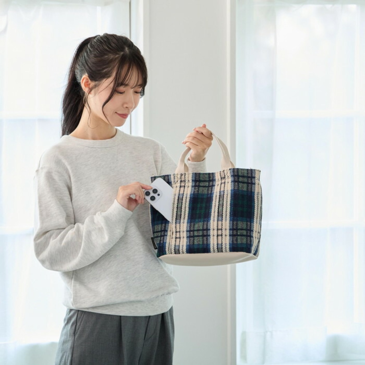 ・季節を感じる素材で作ったシンプルな形の2wayトートです。