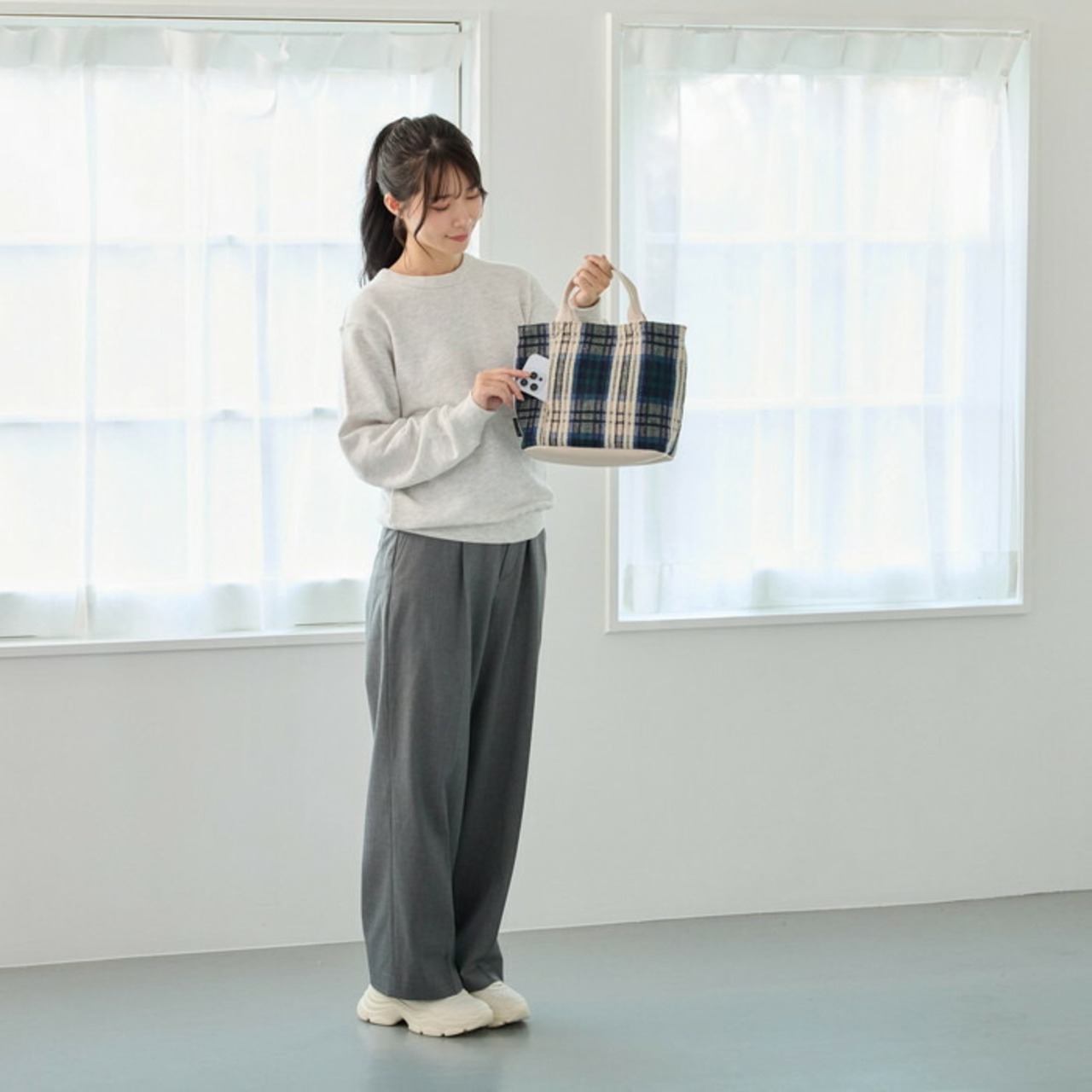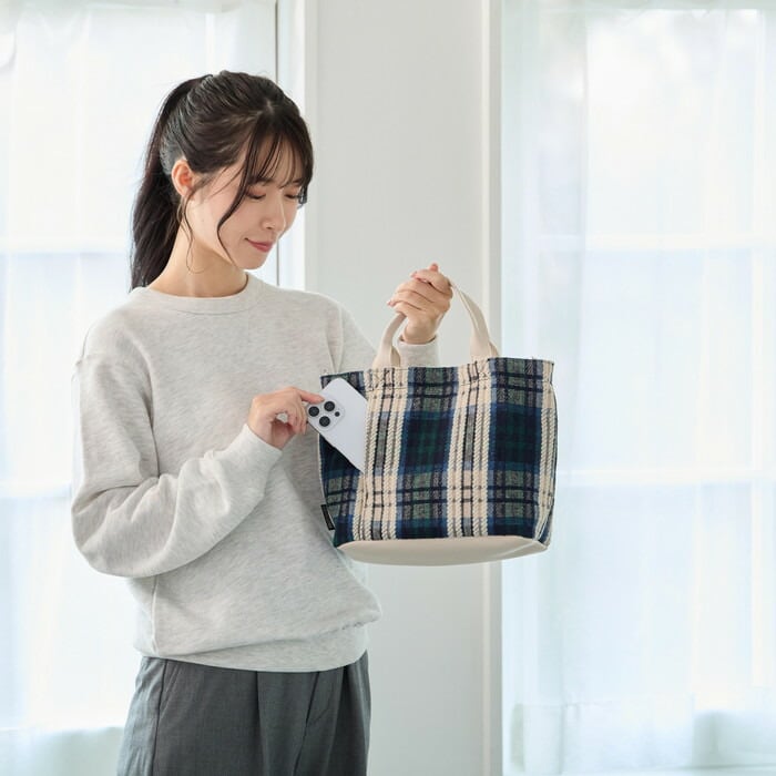 表地:ポリエステル/裏地:ポリエステル/持ち手:合成皮革/留め具:マグネットホック
