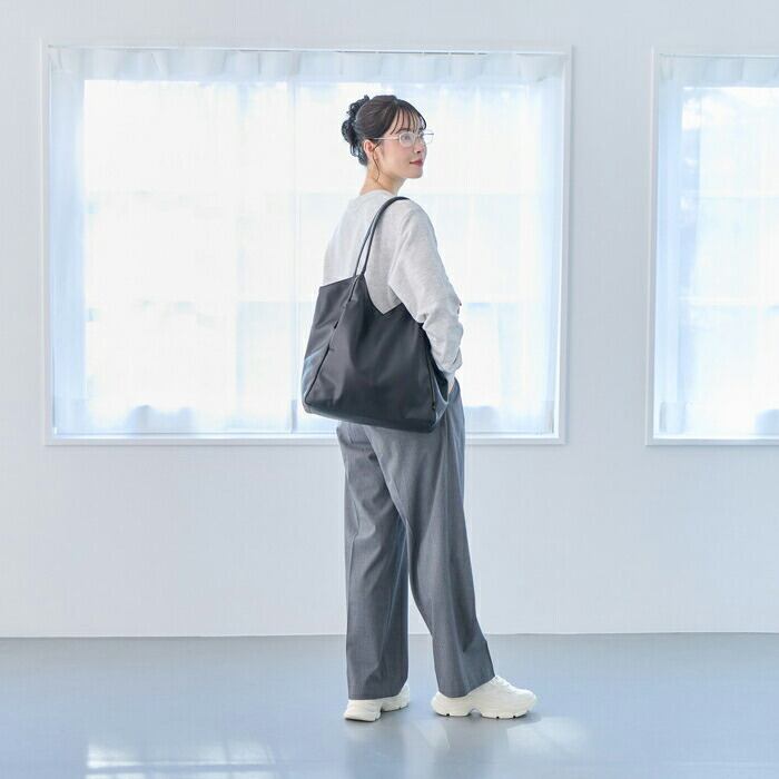 ・広めの収納力を持ちながらも、持ったときの印象はスマート。荷物が多い日でも“すっきり持てる”のがうれしいポイント。