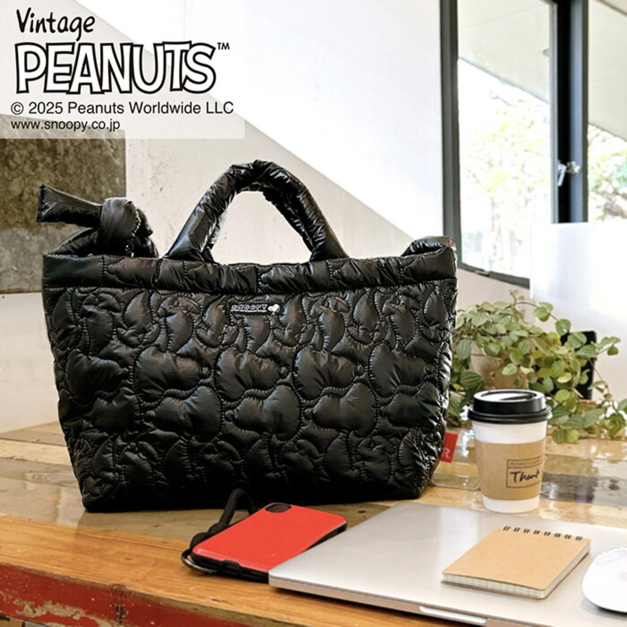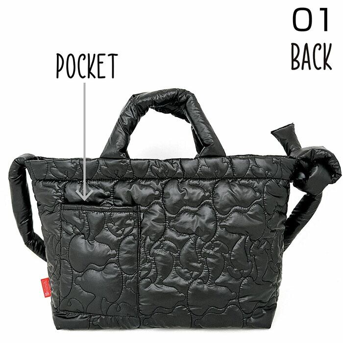 ・キルティングのパターンがスヌーピーのシルエット!ふかふかモチモチのショルダーストラップもポイントです。