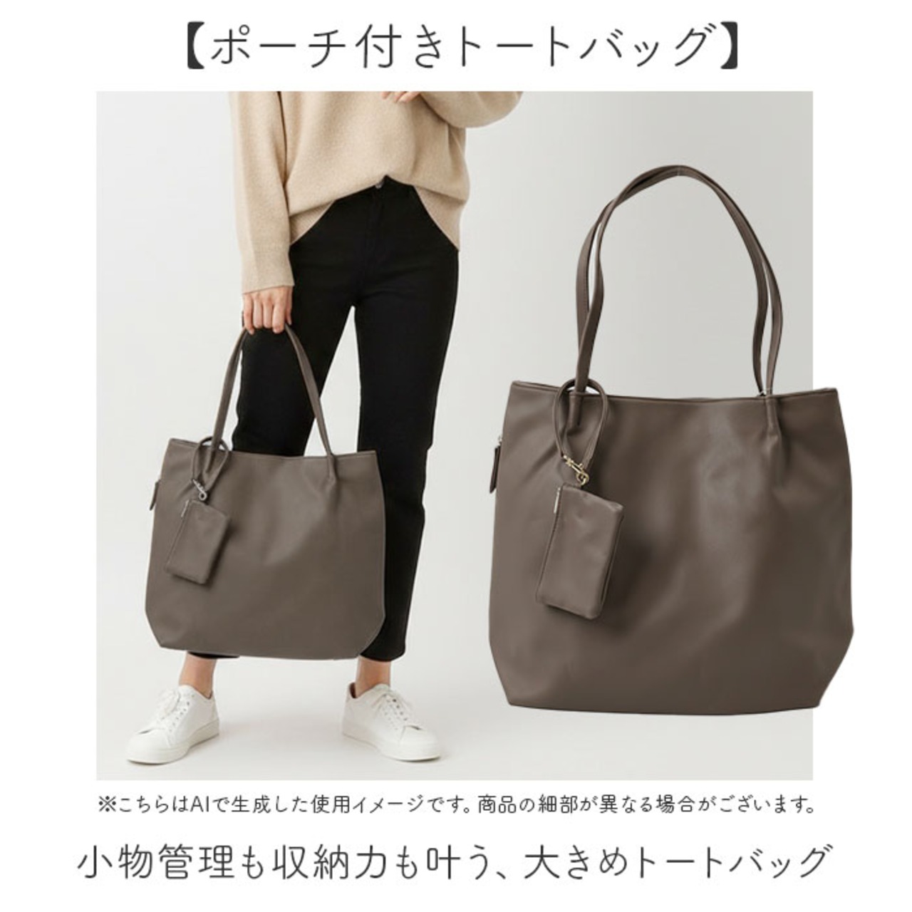 ・小物管理も収納力も叶う、大きめトートバッグ