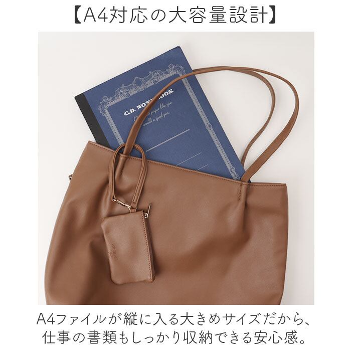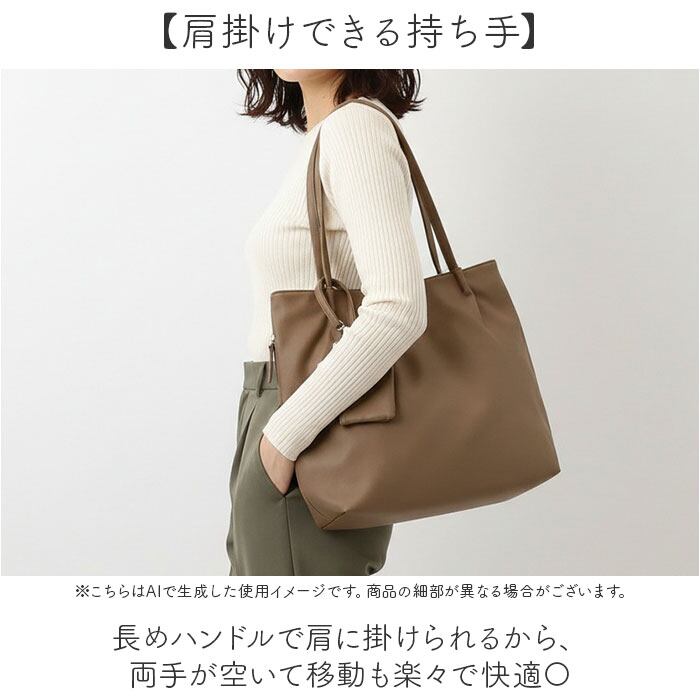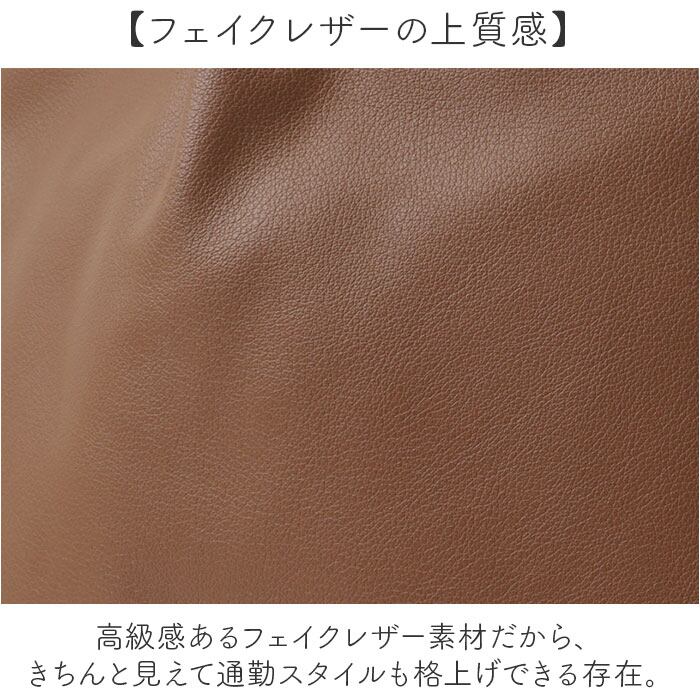 ・高級感あるフェイクレザー素材だから、きちんと見えて通勤スタイルも格上げできる存在。
