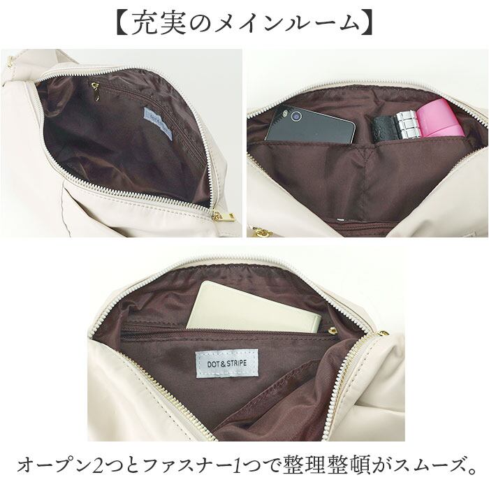 ・オープン2つとファスナー1つで整理整頓がスムーズ。
