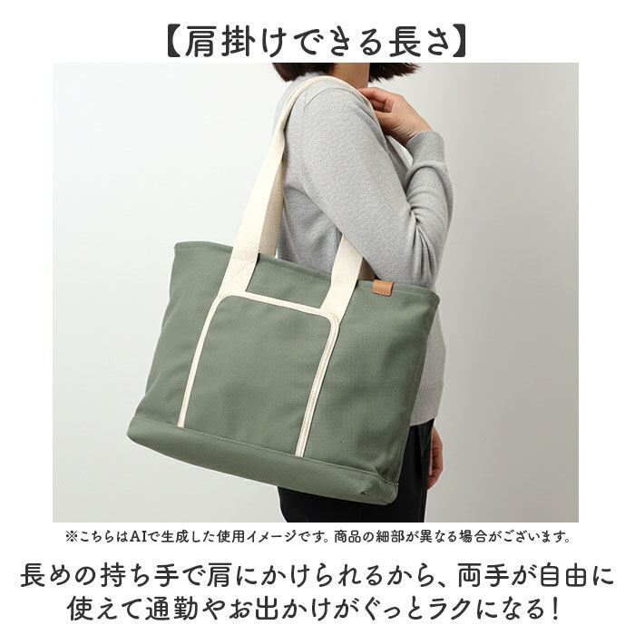 ・長めの持ち手で肩にかけられるから、両手が自由に使えて通勤やお出かけがぐっとラクになる!