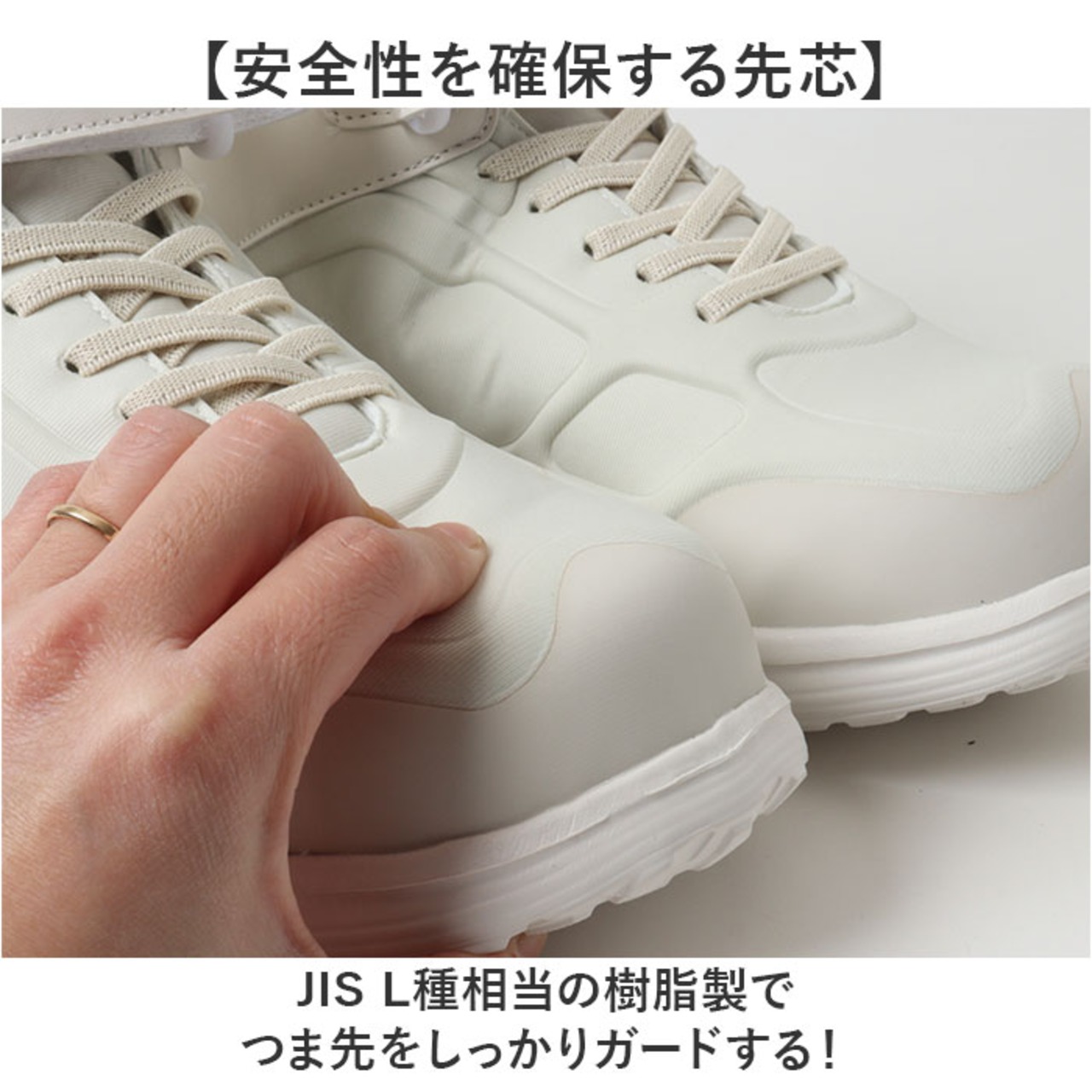 ・JIS L種相当の樹脂製でつま先をしっかりガードする!