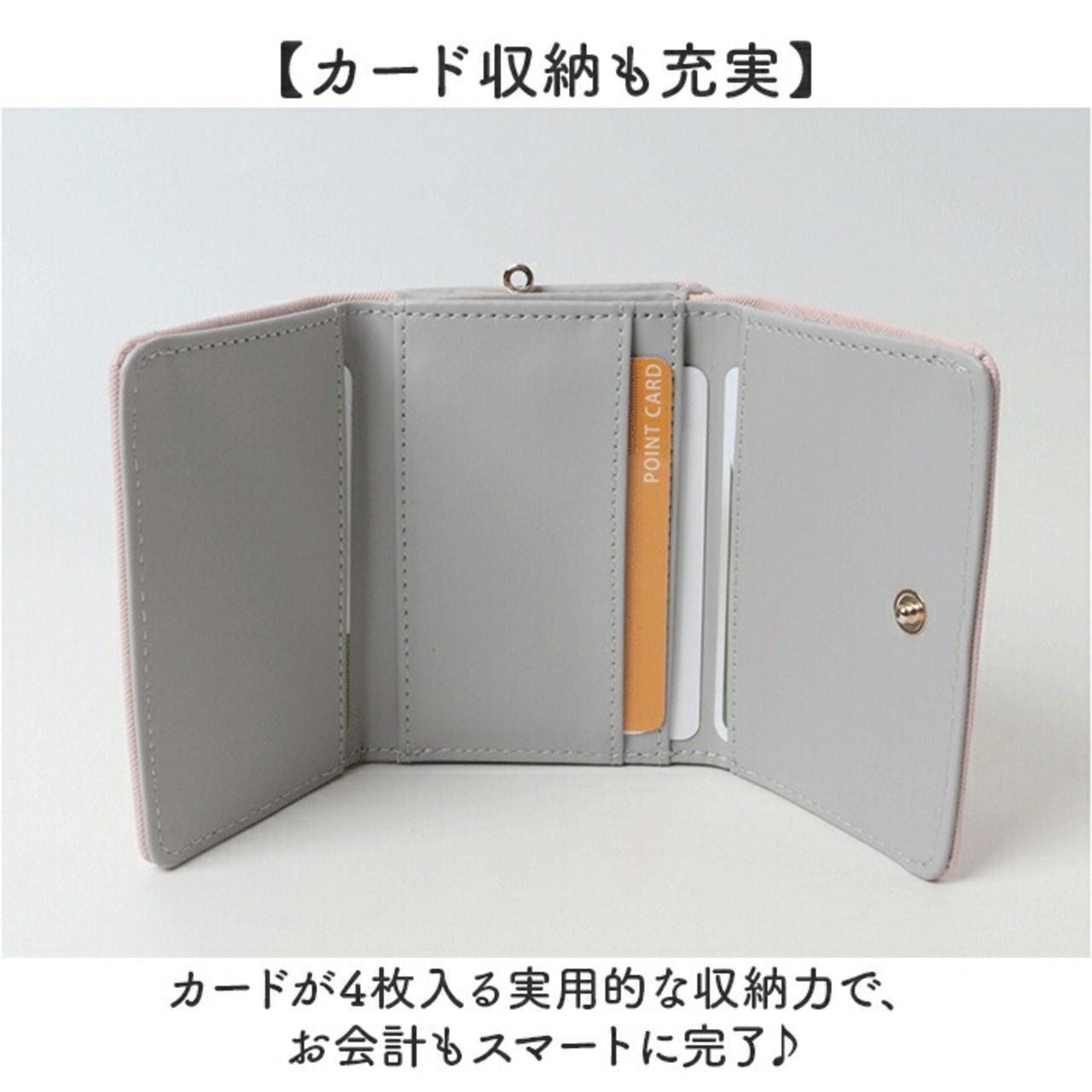 ・カードが4枚入る実用的な収納力で、お会計もスマートに完了♪