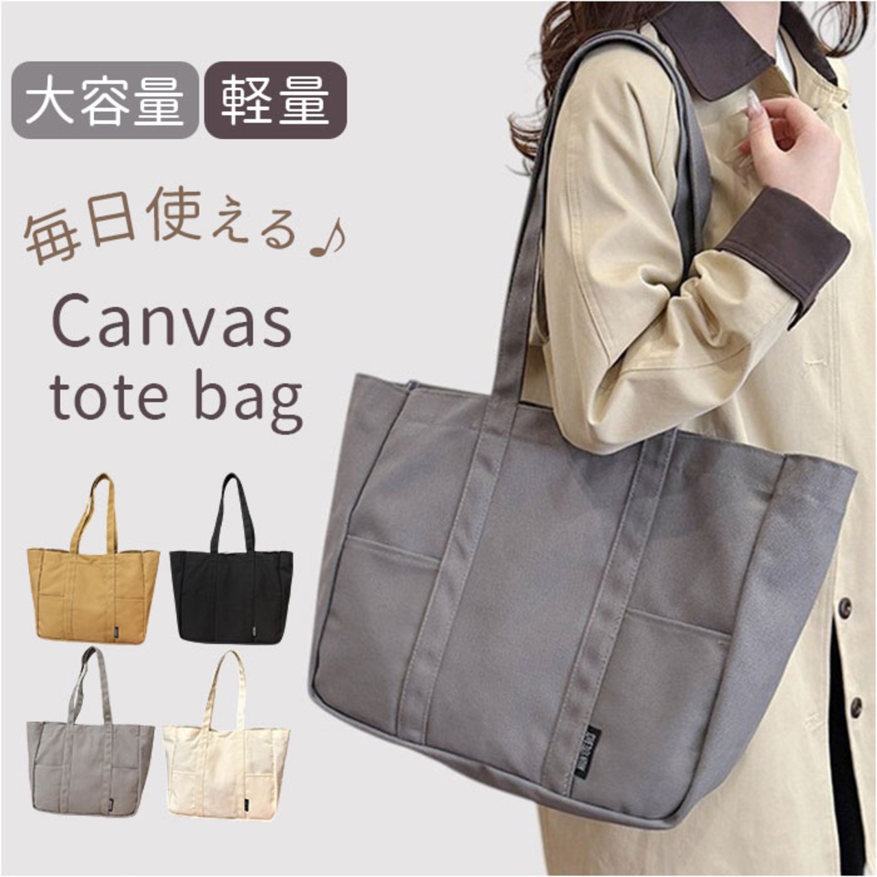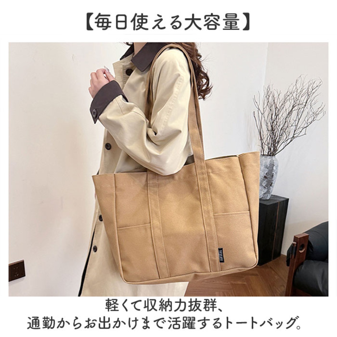 ・軽くて収納力抜群、通勤からお出かけまで活躍するトートバッグ。