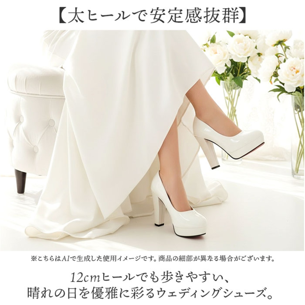 ウェディングシューズ 太いヒール